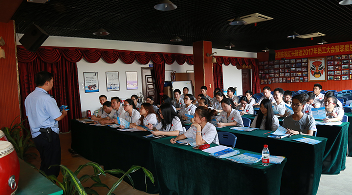 為進一步增強廣東匯興精工智造股份有限公司(股票代碼:839258)全體員工的自我保護意識,提高自我防范能力,預防和減少詐騙跟盜搶性案件的發(fā)生, 7月29日下午,匯興智造特邀楊屋派出所民警走進企業(yè),為全體員工開展“防騙、防搶”安全知識講座。公司全體辦員工代表共計40人在匯興學校聆聽精彩的講座。