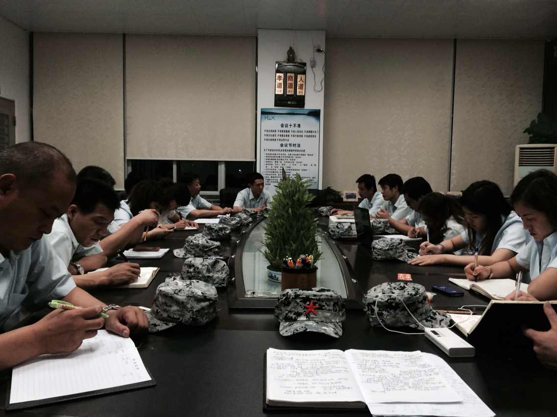 2014年6月14日下午,匯興智造董事長(zhǎng)鐘輝帶領(lǐng)公司核心高管干部走訪了三個(gè)企業(yè)參觀學(xué)習(xí),當(dāng)晚回來后,7點(diǎn)半會(huì)議室里召開第二季度總結(jié)大會(huì)。會(huì)議上,各位總結(jié)分享了下午時(shí)走訪企業(yè)時(shí)的所感所想,也總結(jié)了這一季度的好與壞。