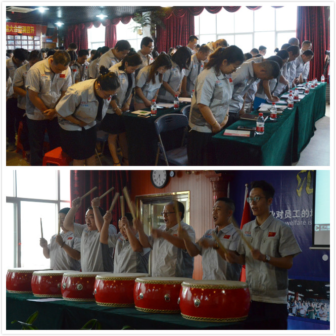 會(huì)議由配件事業(yè)部副總監(jiān)楊思主持。會(huì)議在激昂的《匯興之歌——用心智造世界》拉開(kāi)帷幕,全體參會(huì)人員向企業(yè)“孝道、商道、人道”行三鞠躬禮,宣讀企業(yè)愿景——成為中國(guó)領(lǐng)先的整廠自動(dòng)化系統(tǒng)解決方案提供商,企業(yè)使命——做受尊敬的好人、造受尊敬的產(chǎn)品、辦受尊敬的企業(yè)、建受尊敬的平臺(tái),企業(yè)精神——用情做人、用心做事,團(tuán)隊(duì)精神——忠誠(chéng)團(tuán)結(jié)、勤奮進(jìn)取。隨后,匯興智造董事長(zhǎng)鐘輝帶領(lǐng)子公司、分公司、辦事處領(lǐng)導(dǎo)共同敲響士氣鼓,鼓舞匯興智造牢記初心,砥礪前行。