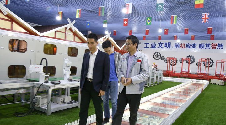 匯興智造董事長鐘輝陪同大家參觀工業(yè)4.0智能裝備體驗(yàn)館