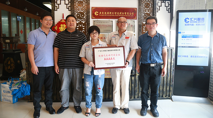 2017年8月30日,經(jīng)廣東省質(zhì)量技術(shù)監(jiān)督局、省標(biāo)準(zhǔn)化協(xié)會專家組的現(xiàn)場評審,廣東匯興精工智造股份有限公司(股票代碼:839258)再度獲評為“AAAA級標(biāo)準(zhǔn)化良好行為企業(yè)”及《機械安全 安全設(shè)計與精益制造指南》國家標(biāo)準(zhǔn)起草單位,在行業(yè)中到示范引領(lǐng)作用。