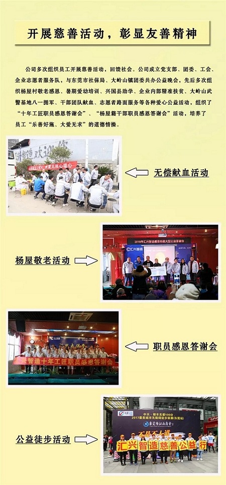 如果信念有顏色,那一定是中國紅!無償獻血是無私奉獻、救死扶傷的崇高行為,是我國血液事業(yè)發(fā)展的強大助力和保障。匯興智造作為東莞市首批10家“友善企業(yè)”之一,始終在堅持以人為本,注重人文關(guān)懷的同時,致力于將“友善”的價值觀、理念融入公司日常活動中,通過快樂工作,幸福生活的獨具特色的“友善文化”和“一個行業(yè) 一個家庭 一所學(xué)校 一支軍隊”的人文理念,把社會主義核心價值觀融入到員工思想教育工作之中;夯實“友善企業(yè)”基礎(chǔ)、打造“友善環(huán)境”陣地、構(gòu)建友善勞動關(guān)系。在點點滴滴中融合、滲透,全方位落地生根,營造和諧友善氛圍和人文環(huán)境,積極提升員工的幸福感和自豪感,讓員工在公司平臺上充分展現(xiàn)自我,實現(xiàn)自身價值,創(chuàng)享更加美好的生活。