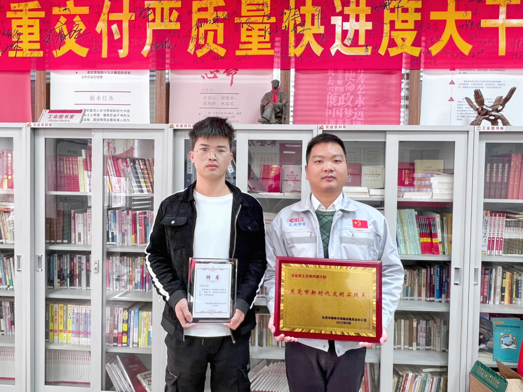 助力共建文明城市,共享友善東莞。匯興智造人事行政部袁經(jīng)理參加會(huì)議并受領(lǐng)實(shí)踐點(diǎn)牌匾。