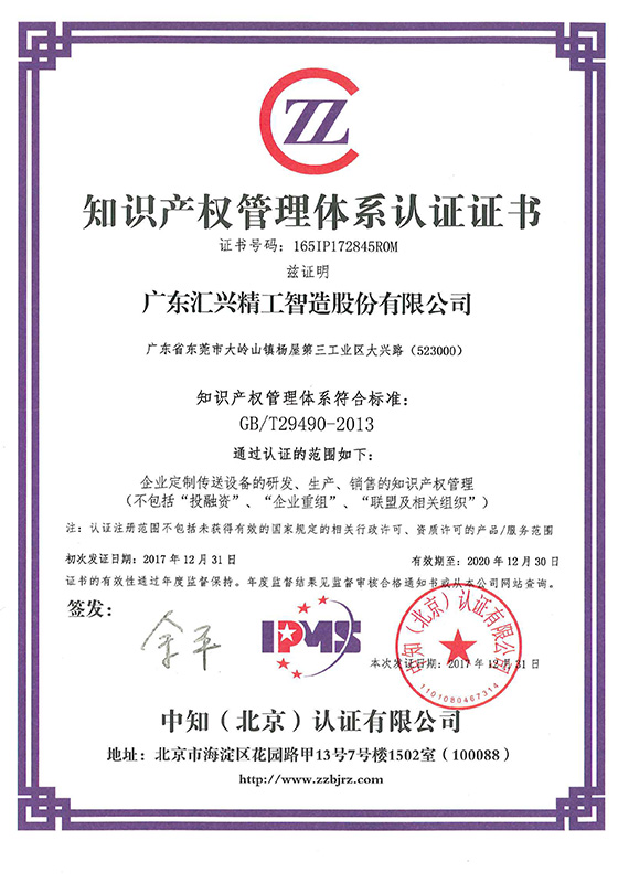 知識產(chǎn)權(quán)管理體系認(rèn)證證書